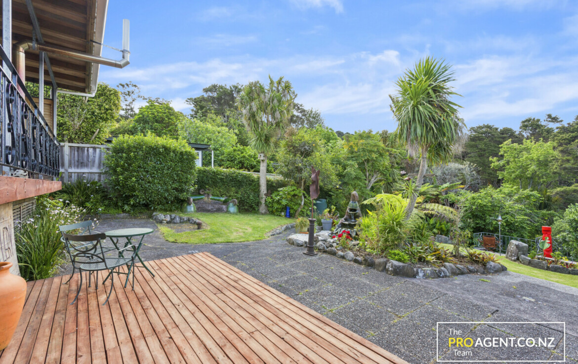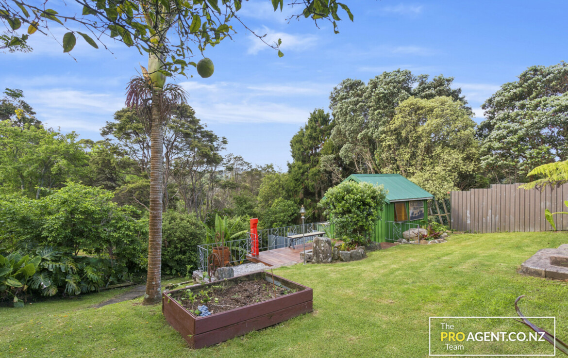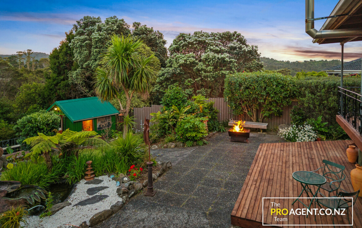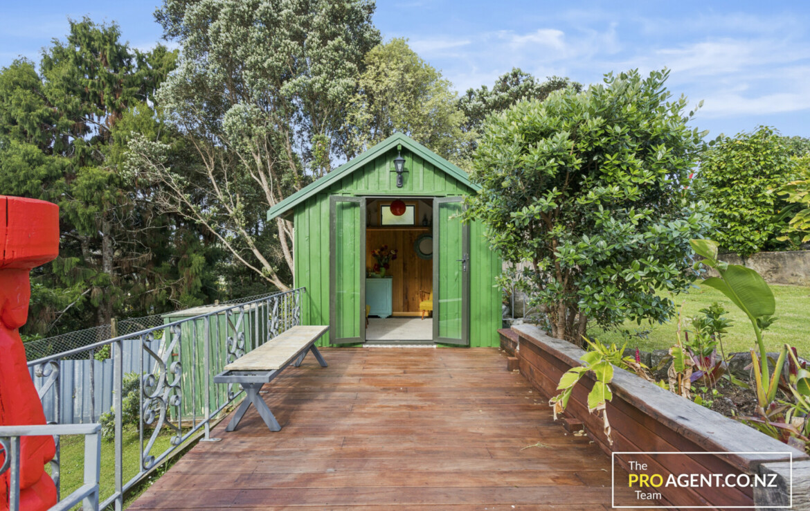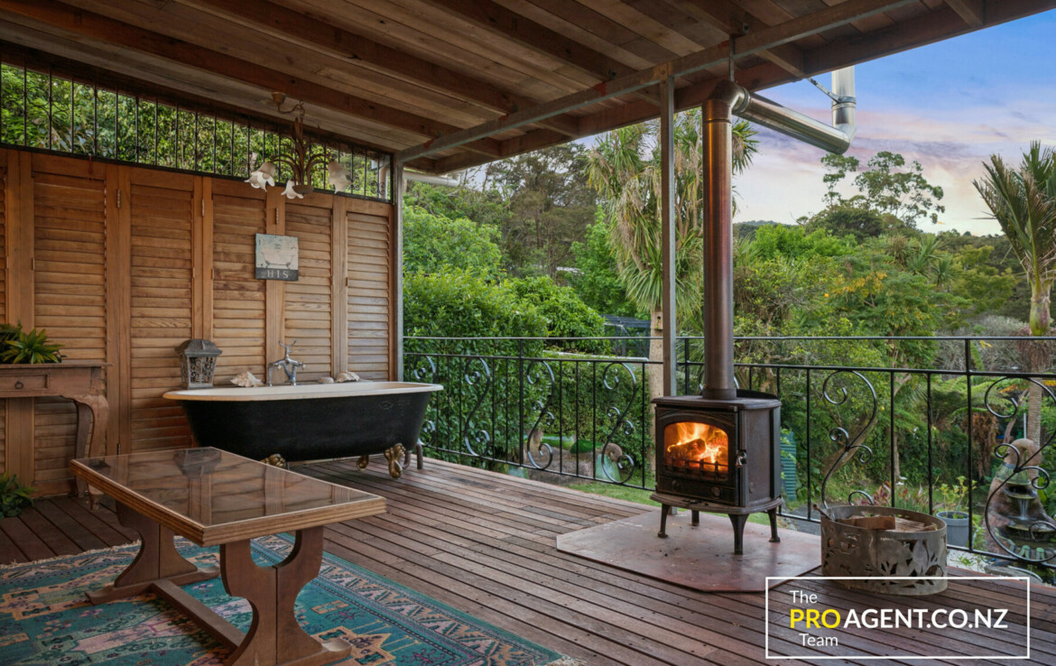 Inside, the character shows through simple, honest materials. The dining area has polished timber floors, the kitchen features a solid rimu benchtop, and the living room opens out in two directions, bringing in morning light and glimpses of the harbour to the east, and connecting to a sheltered, fully covered deck and peaceful garden to the west. The flow between indoors and outdoors is effortless, making the home ideal for entertaining or quiet family time by the fire.