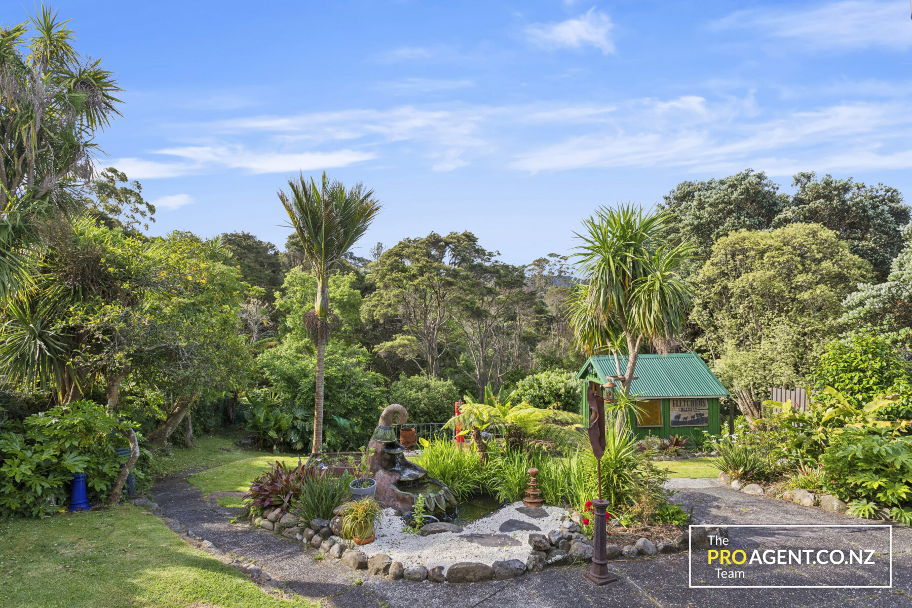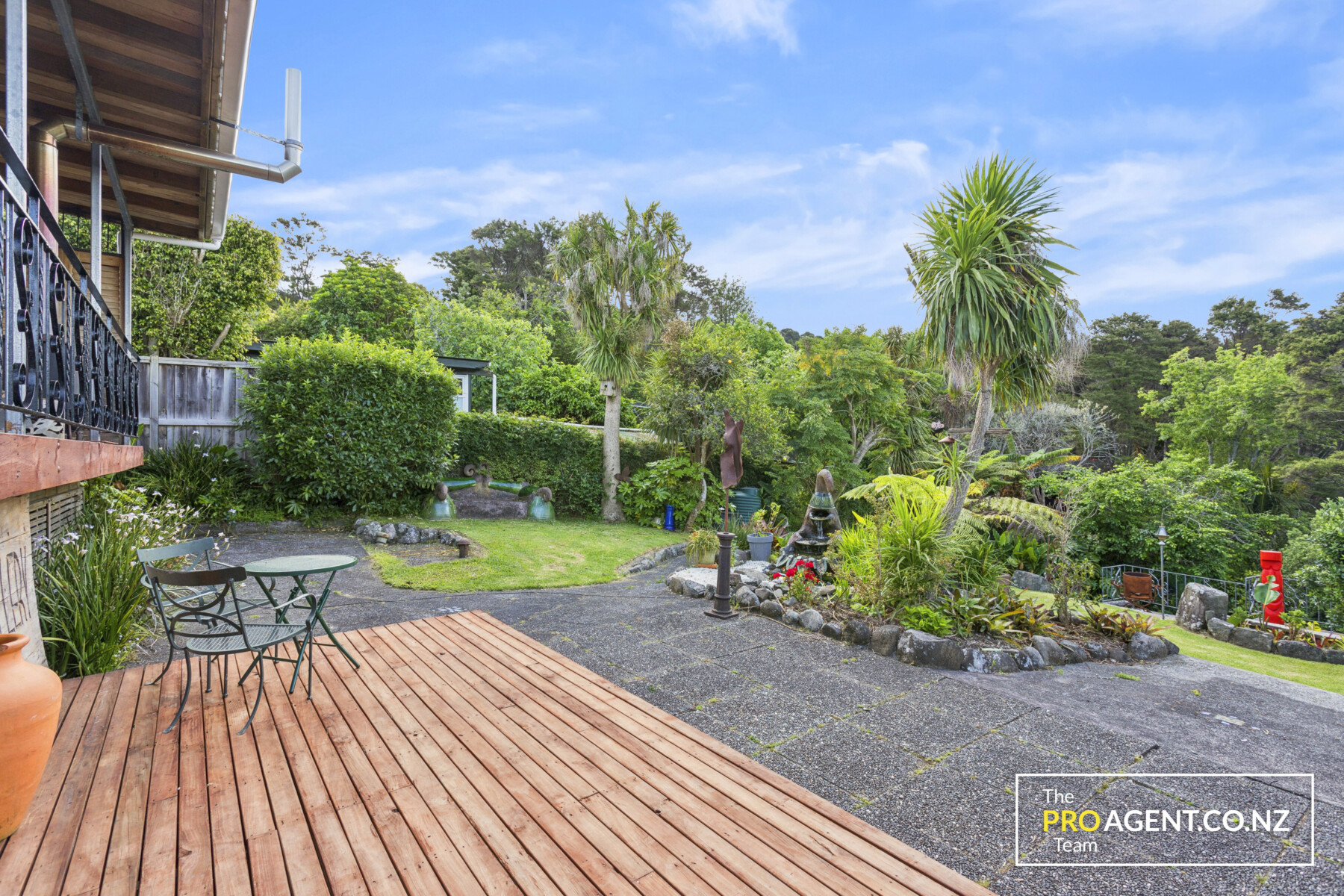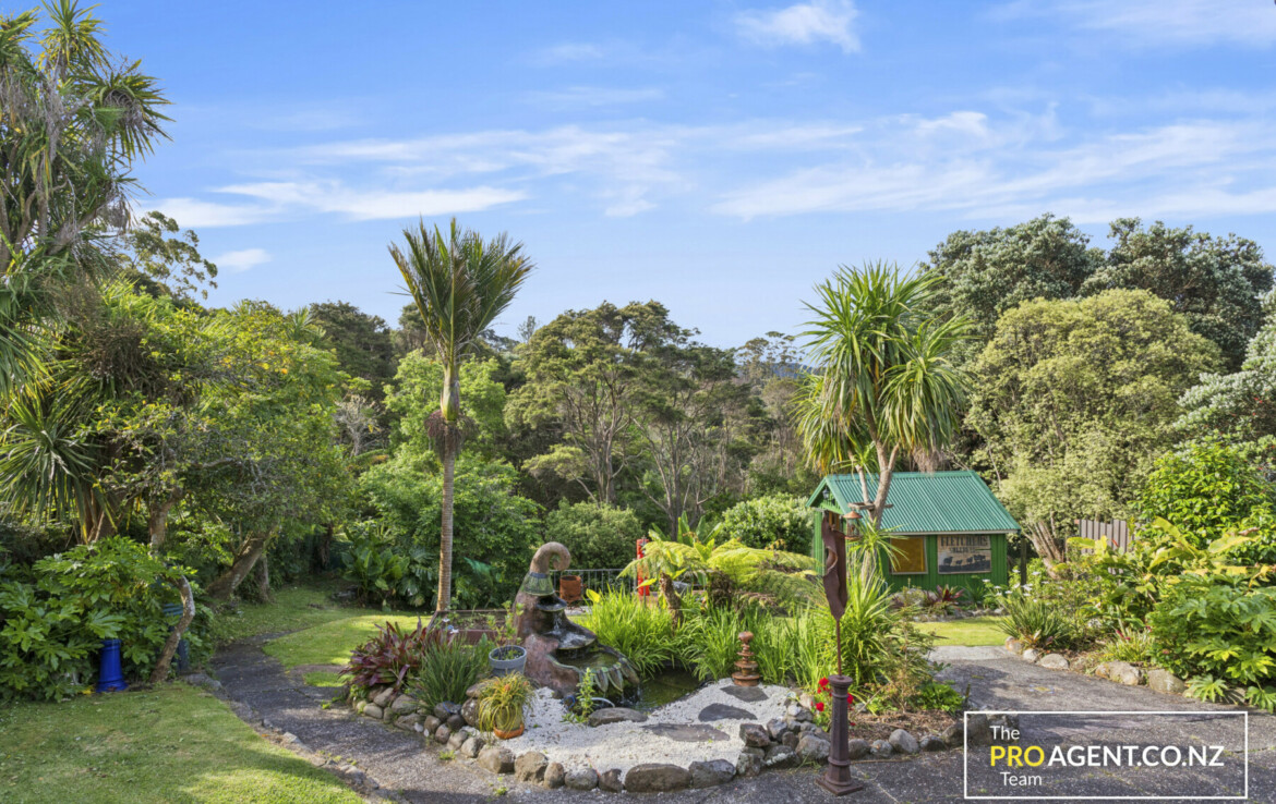 Outdoors, the fully fenced grounds are tranquil and thoughtfully arranged. One water feature, a vege garden, sculptures, and an outdoor bath create a private retreat. There is generous parking out front with a double carport, and space for a caravan or boat. The home sits proudly with gently sloping ground, enjoying views, privacy, native bird life, and all day sun.