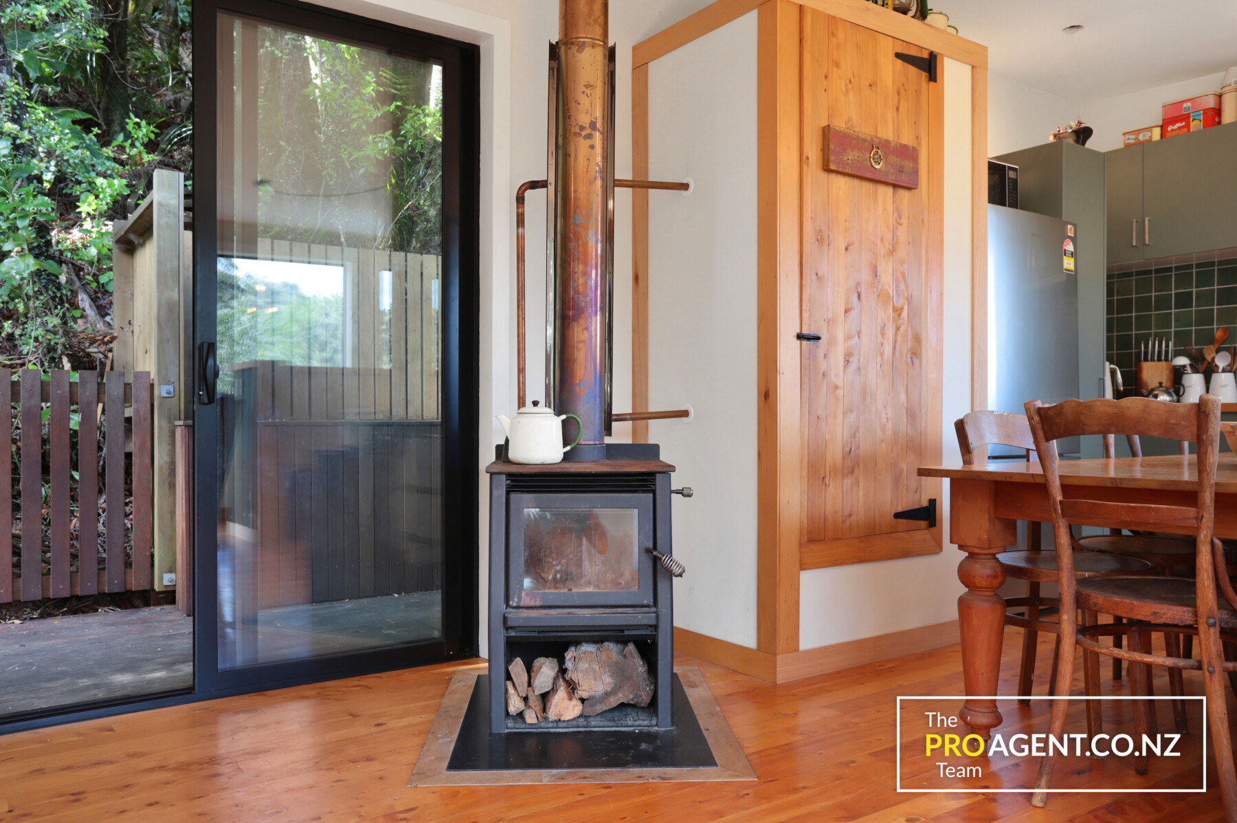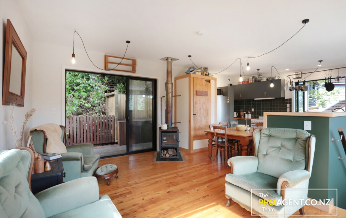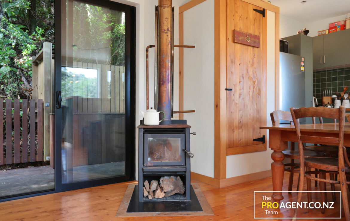 Tucked away in a peaceful setting, the home feels warm and inviting from the moment you step inside. Polished timber floors give the space soul, sunlight filters through elevated windows framing the leafy outlook and the cute potbelly style fireplace adds a cosy glow on cooler nights.