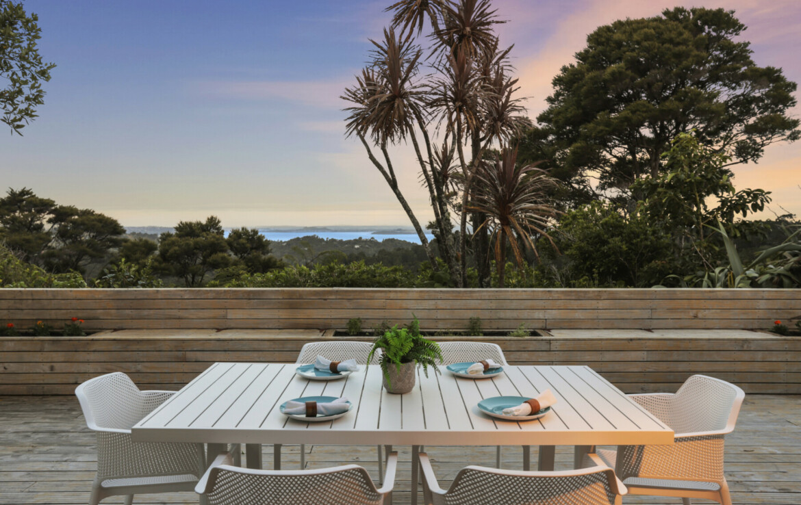 This is Laingholm living at its finest. Thoughtfully designed to follow the natural contours of its site, this architecturally inspired home places the views and privacy at centre stage. From its commanding position, you’ll enjoy sweeping outlooks across the Manukau Harbour and Waitakere Ranges in three directions, creating an ever-changing panorama that wraps the main living area in light and beauty. The elevated “Eagle’s Nest” setting offers all-day sun and complete privacy from neighbouring homes.