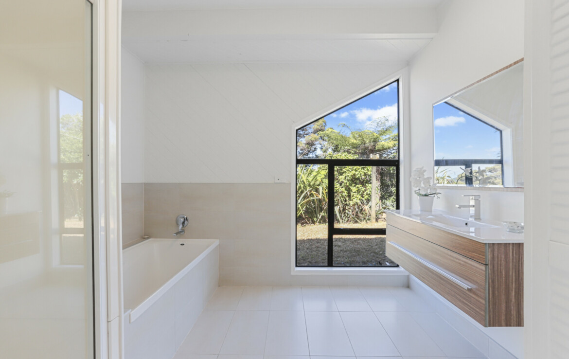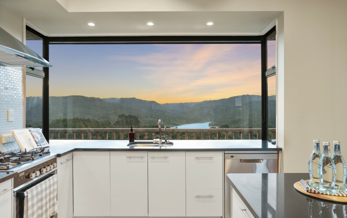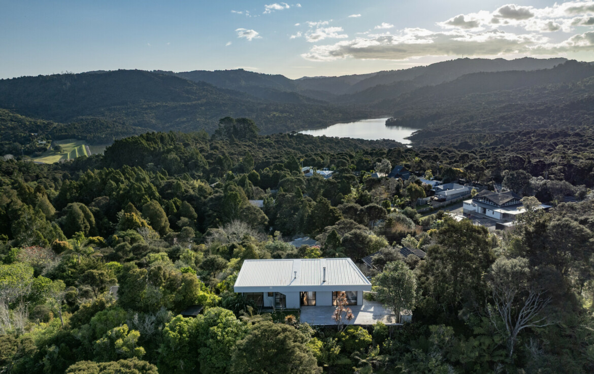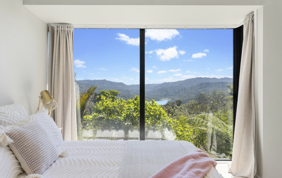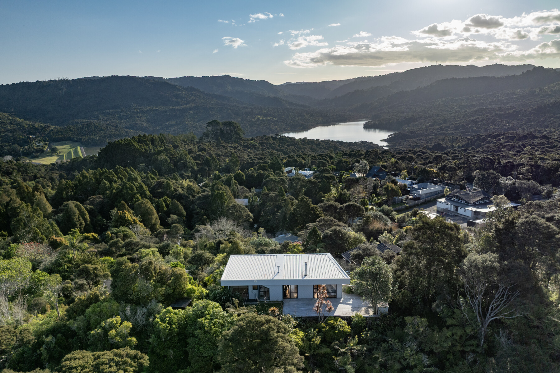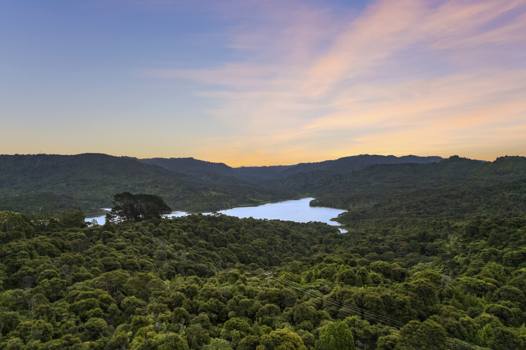 Downstairs, a large second lounge offers a peaceful retreat with calming views of the Lower Nihotupu Reservoir, also shared by the bedrooms on this level. Nearly every room offers its own outlook to lush bush or water, reinforcing the home’s sense of sanctuary.