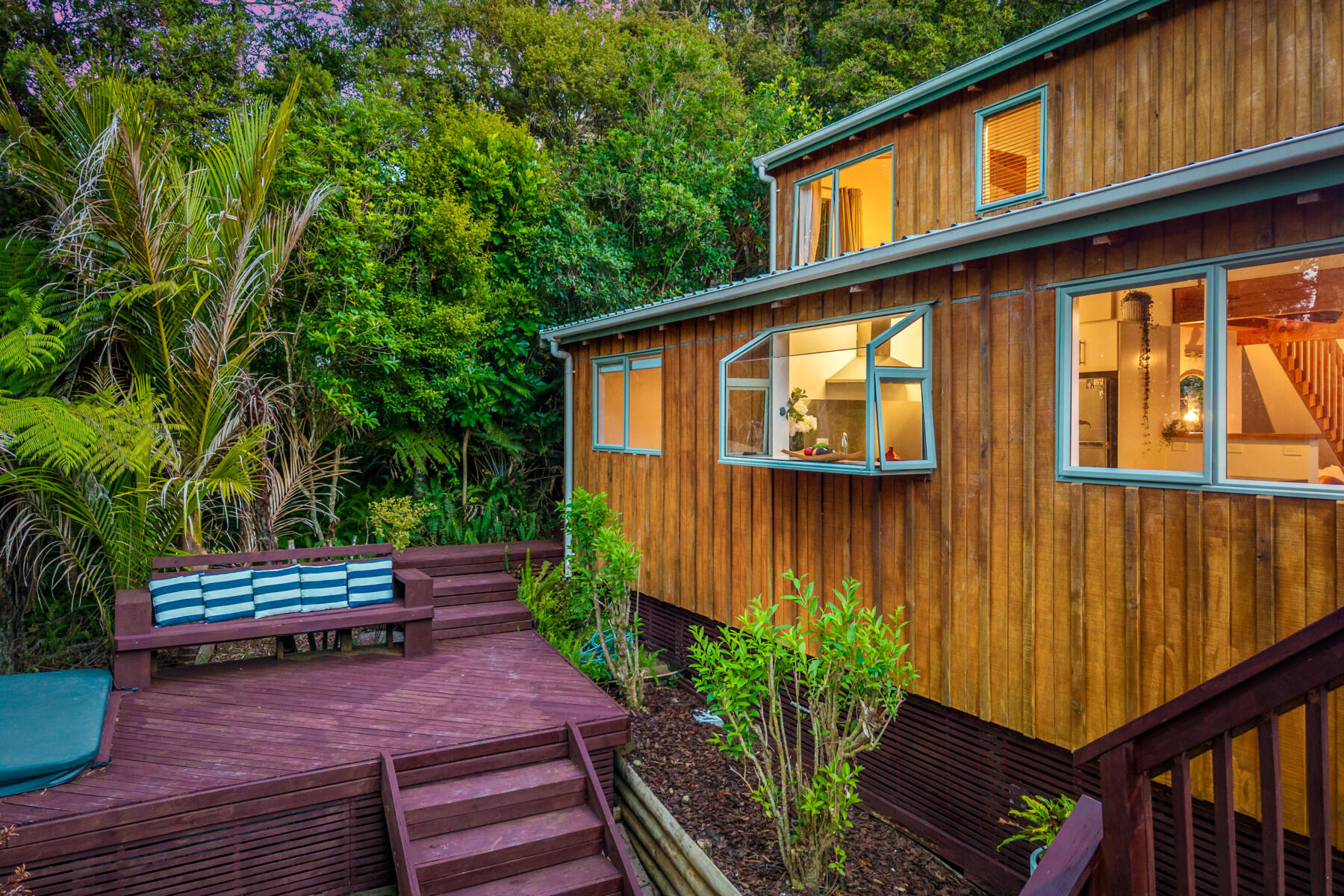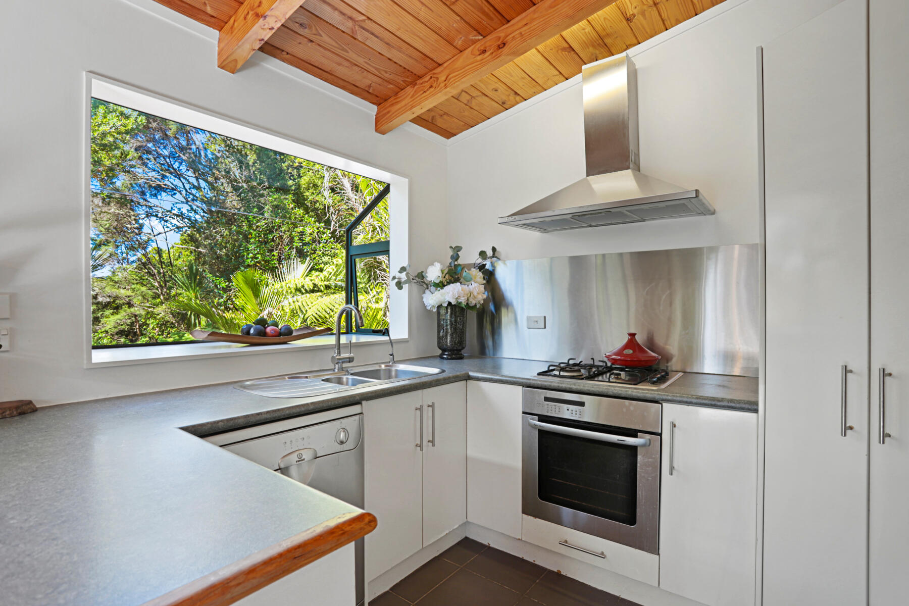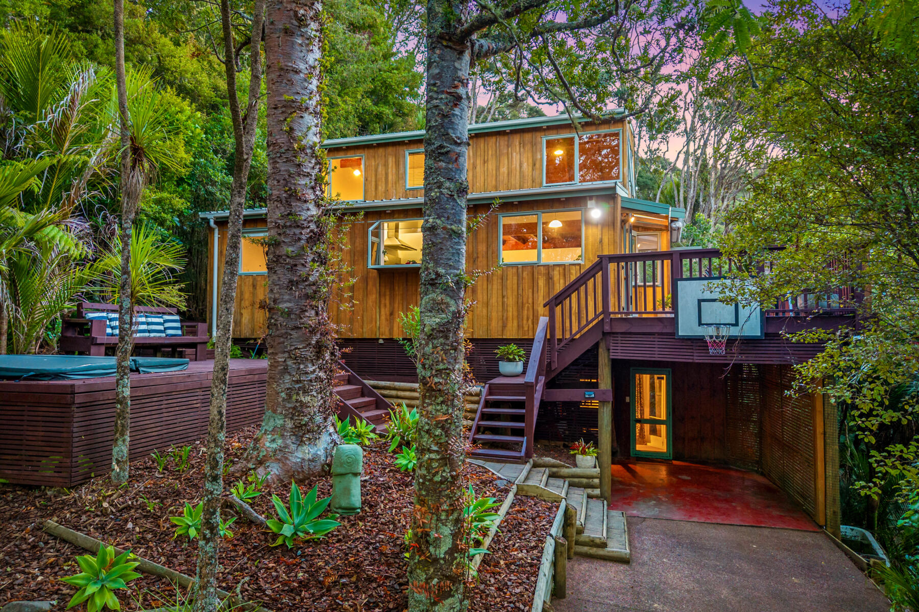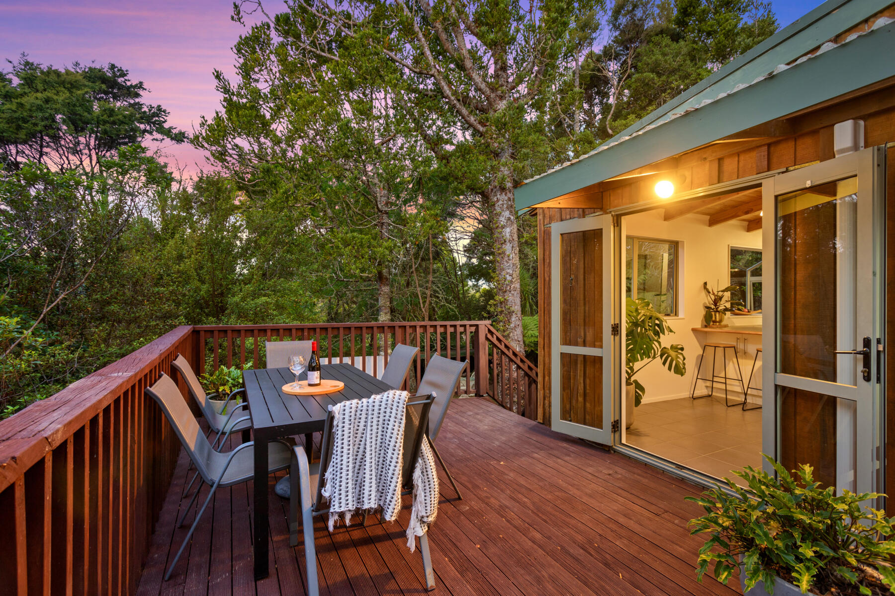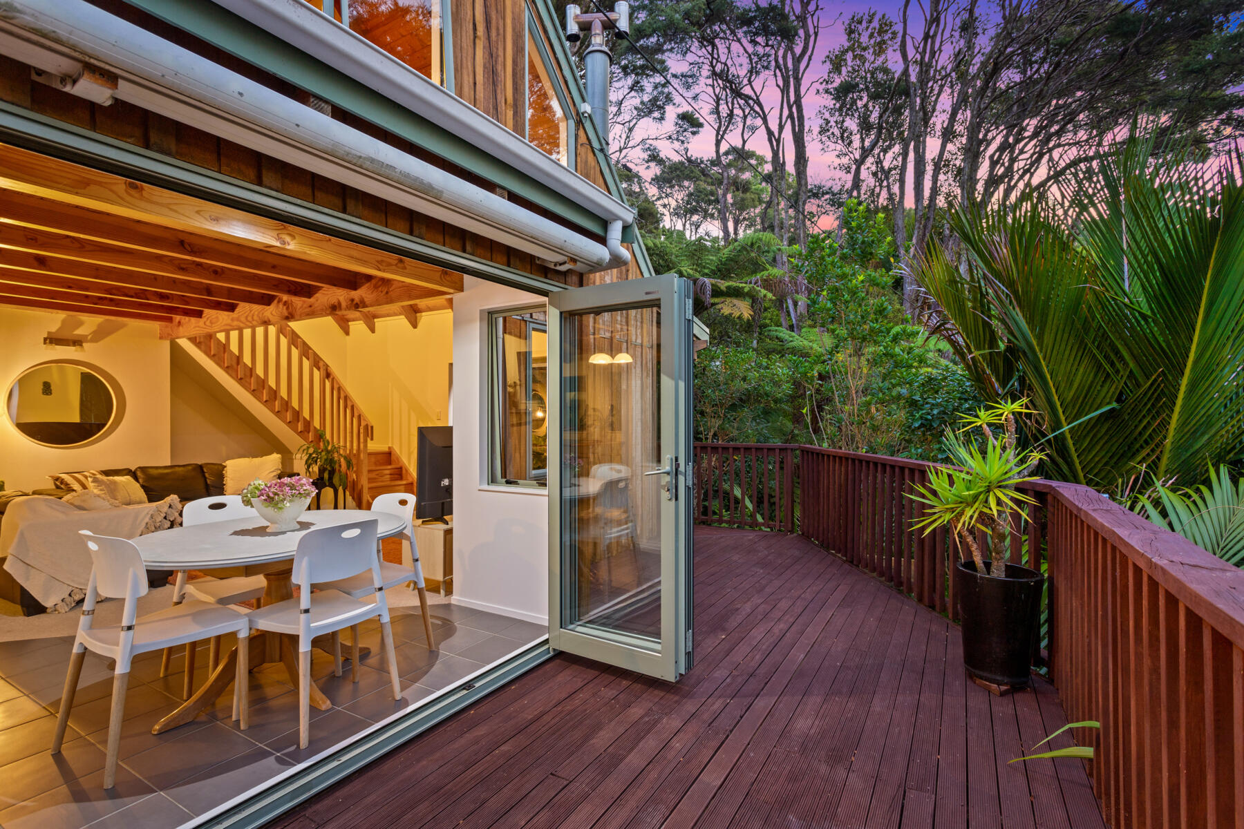 Outside, expansive decks and usable lawn areas provide room to entertain, unwind and enjoy the surrounding native bush setting. The elevated position ensures excellent sun, privacy and a relaxed Laingholm lifestyle.