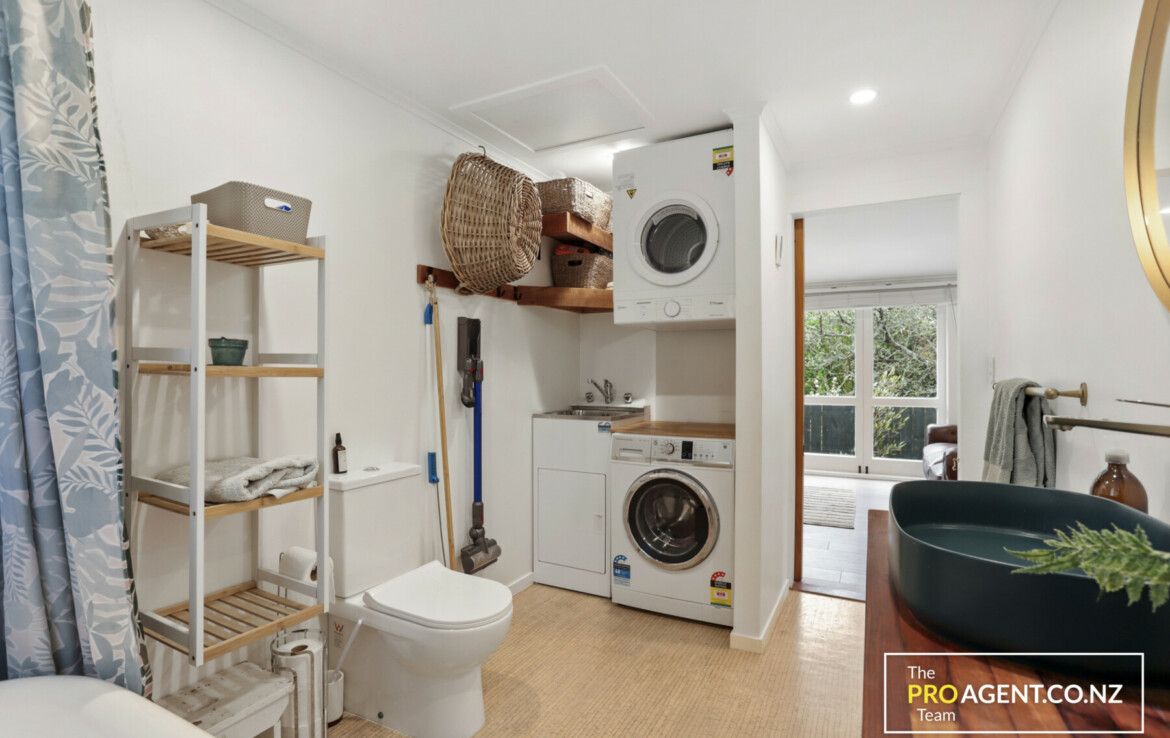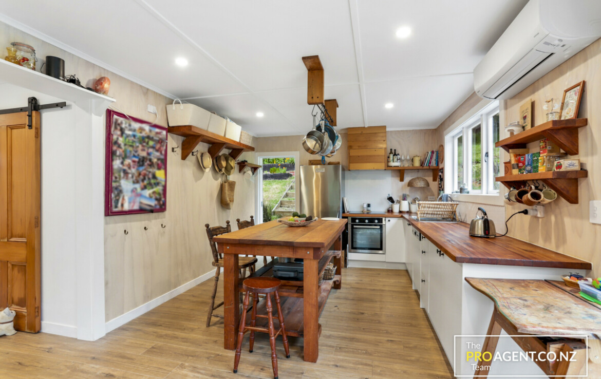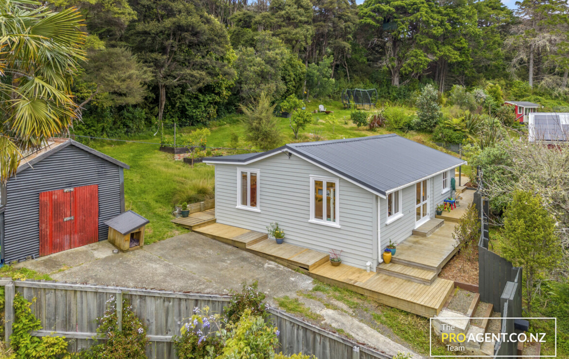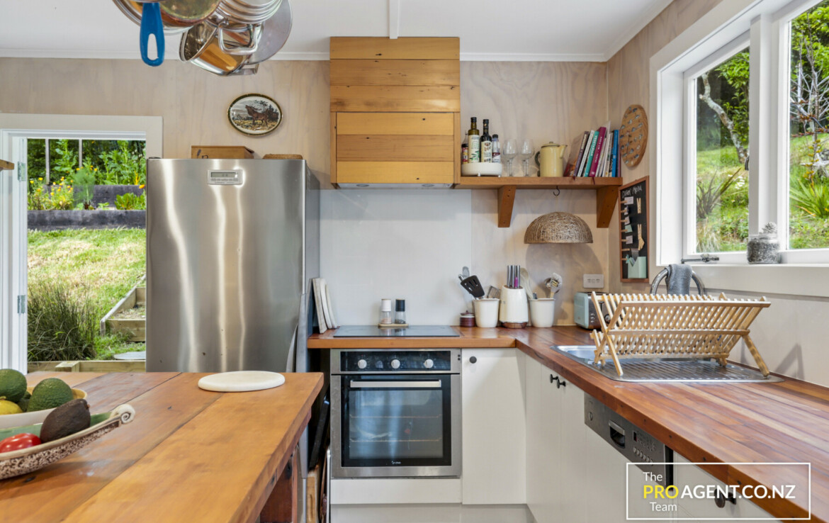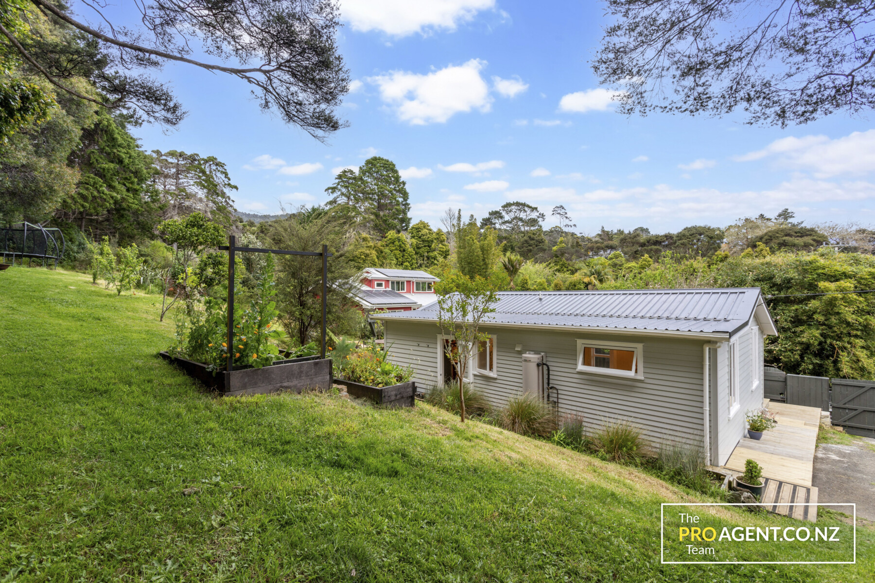 This beautifully renovated weatherboard home captures everything there is to love about coastal living in Parau. Full of warmth, character and charm, it’s the perfect retreat for those who value lifestyle, connection and a touch of everyday magic. Clean, eco living and sustainability have been thoughtfully considered, with wool carpet in both bedrooms, natural paints by The Natural Paint Co. used throughout, and repurposed kauri benchtops adding timeless character. The owners have also been deeply conscious of the environment outdoors, intentionally planting over 50 native trees and shrubs to attract birdlife and pollinators, creating a flourishing, biodiverse garden sanctuary.