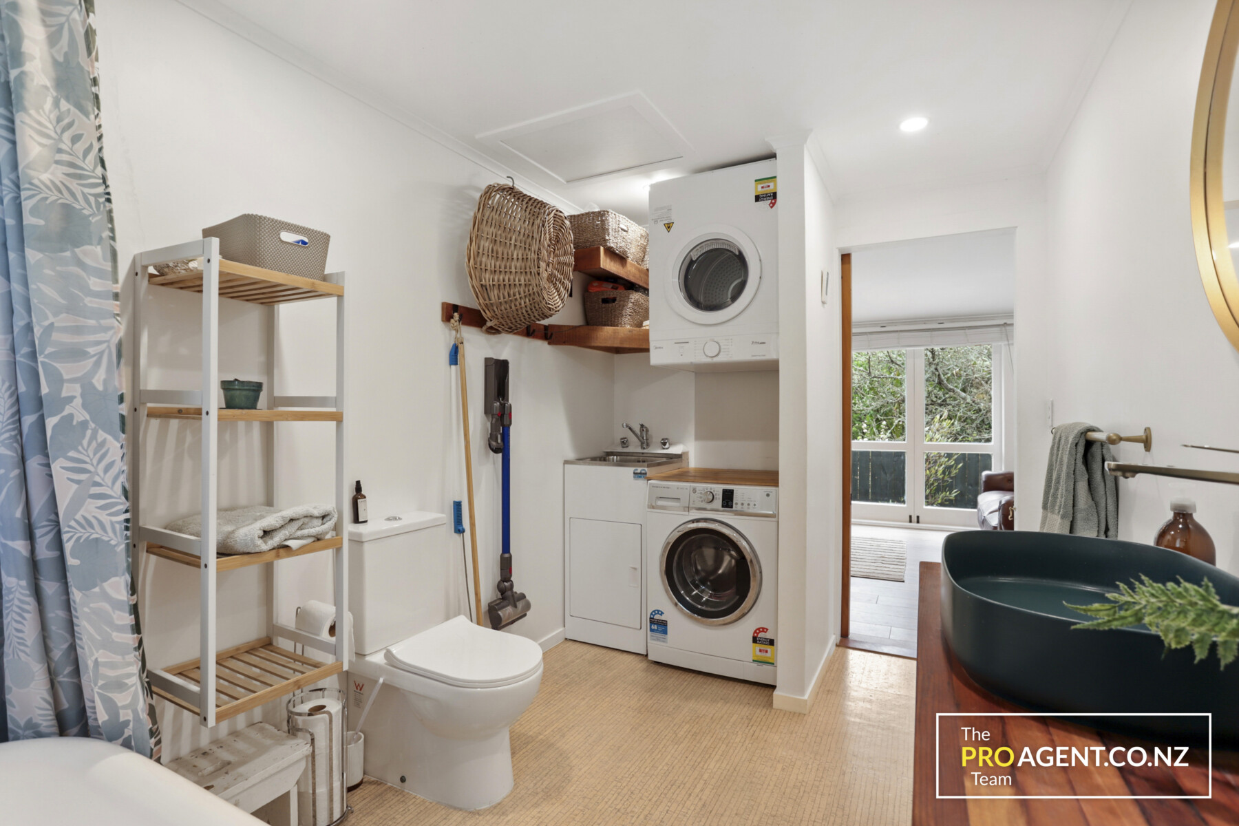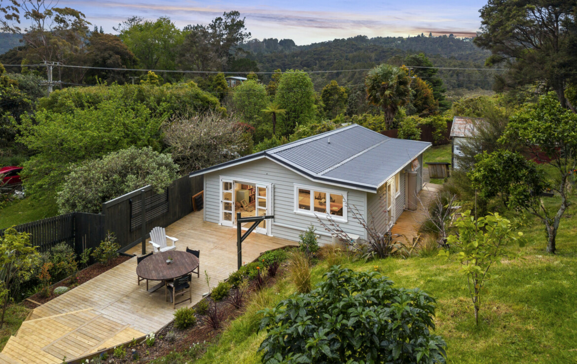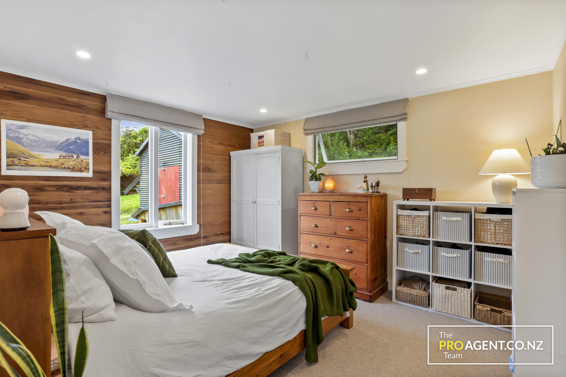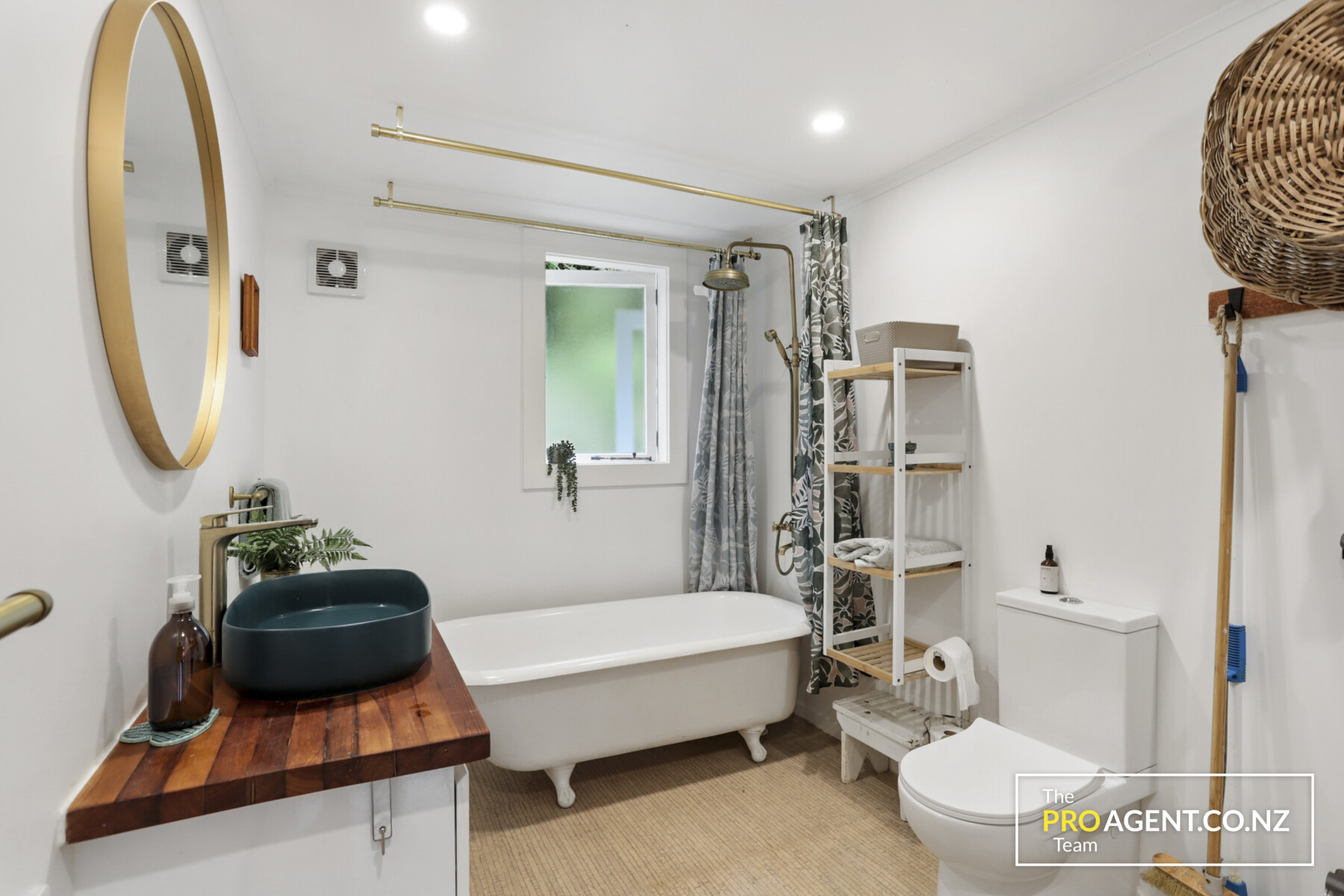 This beautifully renovated weatherboard home captures everything there is to love about coastal living in Parau. Full of warmth, character and charm, it’s the perfect retreat for those who value lifestyle, connection and a touch of everyday magic. Clean, eco living and sustainability have been thoughtfully considered, with wool carpet in both bedrooms, natural paints by The Natural Paint Co. used throughout, and repurposed kauri benchtops adding timeless character. The owners have also been deeply conscious of the environment outdoors, intentionally planting over 50 native trees and shrubs to attract birdlife and pollinators, creating a flourishing, biodiverse garden sanctuary.