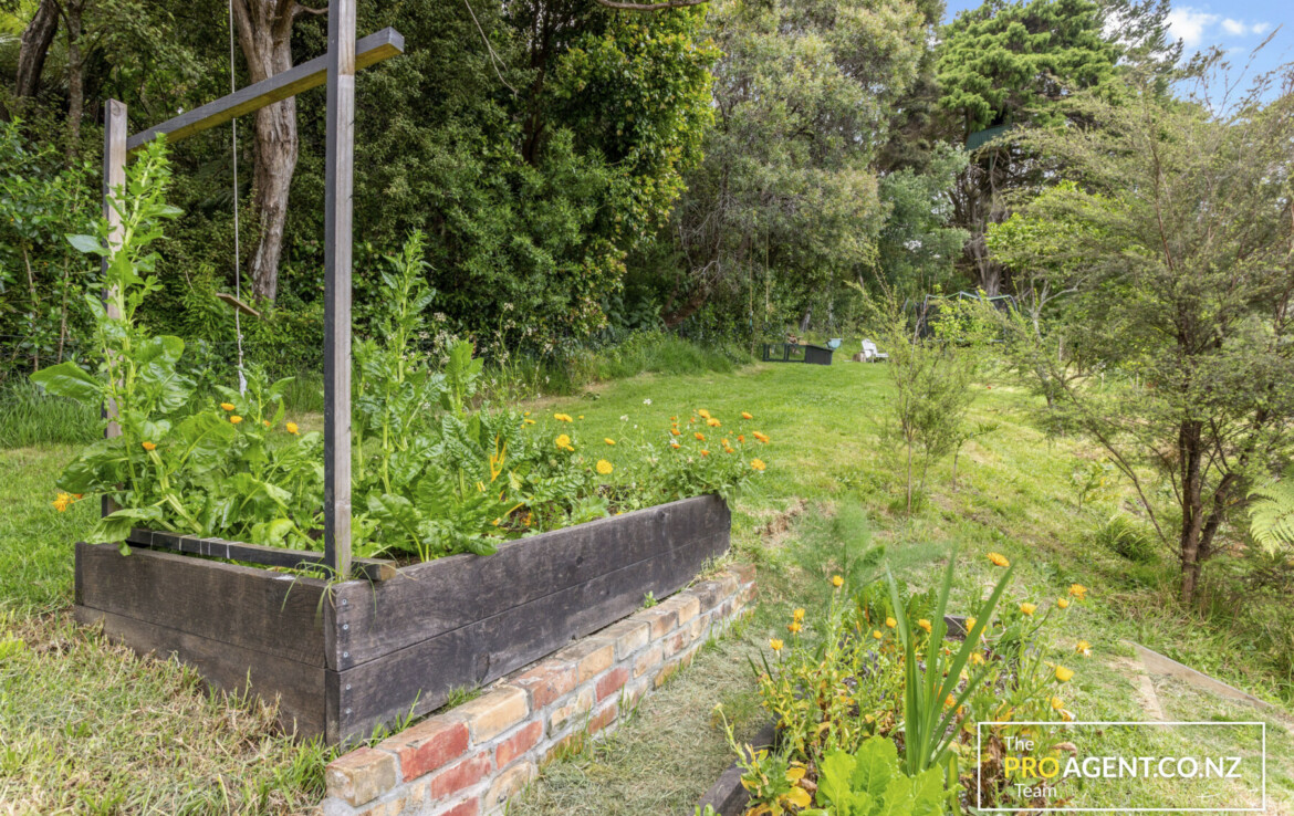 The indoor-outdoor connection is superb. French doors open to a sunny deck, landscaped banks, a whimsical fairy garden and a large, gently sloping lawn planted with 15 fruit trees and organic vegetable gardens, your own slice of abundance. There’s even a garage/storage space and the section is fully fenced for kids and pets to roam safely.