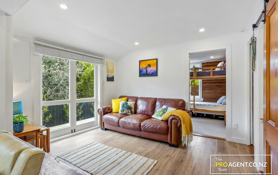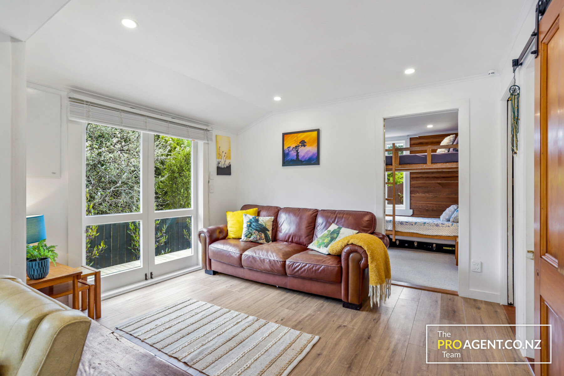 Step inside and you’ll instantly feel the sense of care that’s gone into every detail. The modern character kitchen with its kauri island bench is the heart of the home, a light, social space that flows effortlessly into the generous living area and a handy separate nook, ideal for settling down in the sun with a good book. Two double bedrooms and a stylish bathroom complete the picture inside, with quality finishes throughout.
