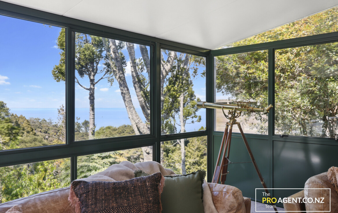 Step inside to an open-plan living area where large picture windows frame the water like artwork. The spacious lounge flows to a modern kitchen and dining zone, perfect for entertaining or simply soaking in the view. A wood burner adds a cozy touch for winter evenings, while the back deck invites you to enjoy sunrise coffees or evening wine surrounded by nature’s soundtrack
