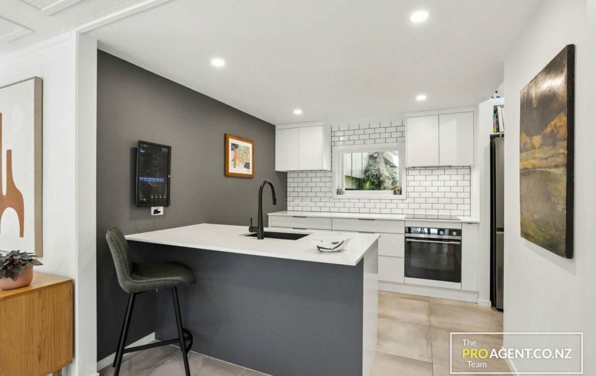 Designed across split levels, the home reveals itself in stages with three bedrooms, two bathrooms, and a layout that invites exploration. A contemporary kitchen with butler’s pantry flows effortlessly into open plan living, where soaring ceilings and natural light create an uplifting sense of space.
